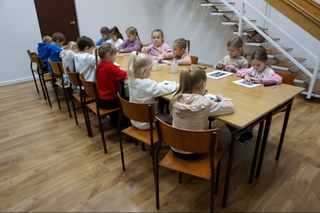 Podczas zajęć zajęliśmy się pojęciami negatywu i rysunku negatywowego. Dzieci wykonały 2 proste ćwiczenia rysunkowe rozwijające ich wyobraźnię i umiejętności rysunkowe. Zobaczyły jak w rysunku można wydobywać światło z ciemnego obszaru, rysując białym narzędziem po czarnej powierzchni. Miały również okazję pracować różnymi narzędziami rysunkowymi.
