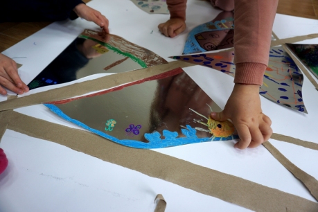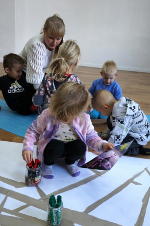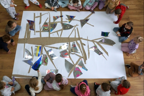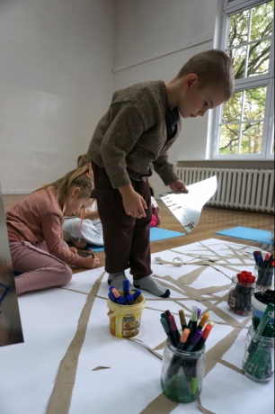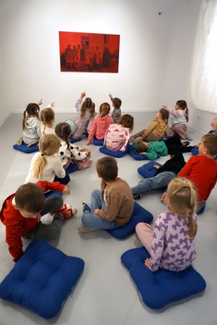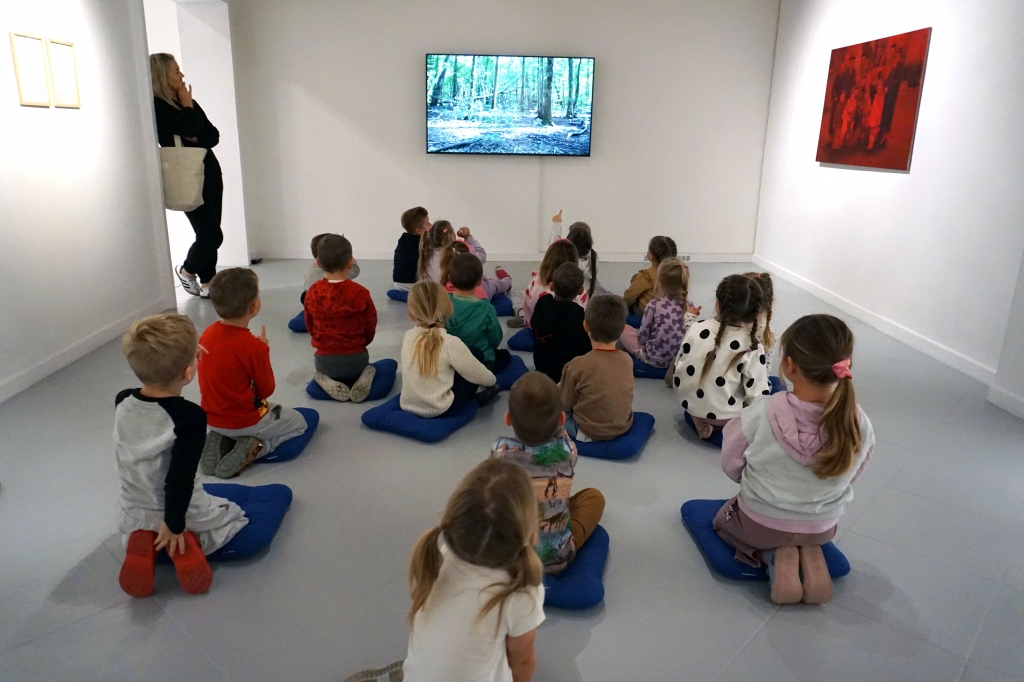 Wraz z grupą przedszkolaków zwiedziliśmy wystawę Natalii Szostak, w której dzieci szukały wątków rodziny i przyrody. Następnie stworzyły drzewo/kłącze, na którym pojawiły się narysowane na papierze/lustrze wspomnienia. Dziękujemy za kolejne twórcze spotkanie z najmłodszymi odbiorcami sztuki!