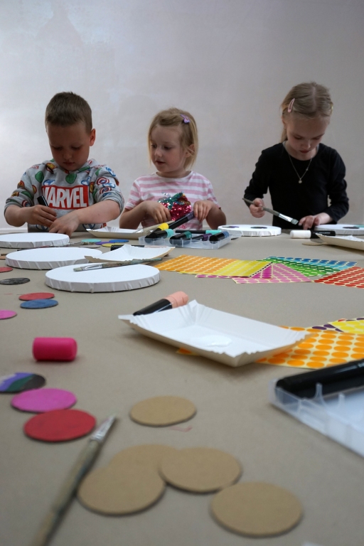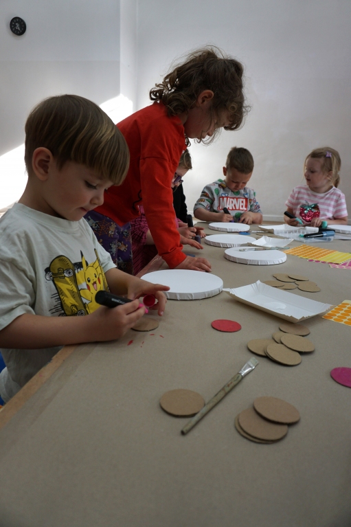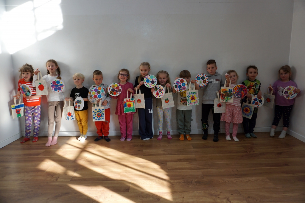 Podczas kolejnych Twórczych cudaków dzieci poznały twórczość Yayoi Kusamy. Wymyśleni bohaterowie zajęć Basia i Kaziu zabrali uczestników na wystawę do Ludwig Museum do Kolonii. Uczestnicy zobaczyli wnętrza pełne obiektów pokrytych różnokolorowymi kropkami. Następnie stworzyli swoje okrągłe obrazy, których głównym bohaterem były kropki, koła i grochy. Na zajęciach dzieci wykonały również małe torby bawełniane, na których kropki zmieniły się w pająki, kotki, jabłuszka, kwiatki i czarne dziury.