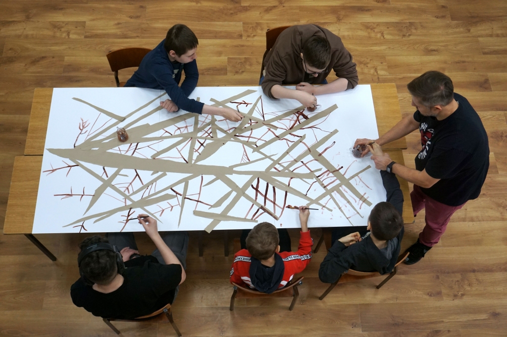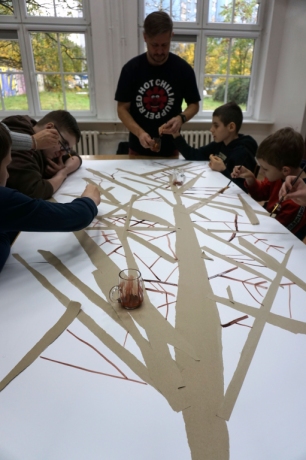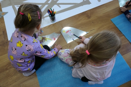 Wraz z grupą przedszkolaków zwiedziliśmy wystawę Natalii Szostak, w której dzieci szukały wątków rodziny i przyrody. Następnie stworzyły drzewo/kłącze, na którym pojawiły się narysowane na papierze/lustrze wspomnienia. Dziękujemy za kolejne twórcze spotkanie z najmłodszymi odbiorcami sztuki!