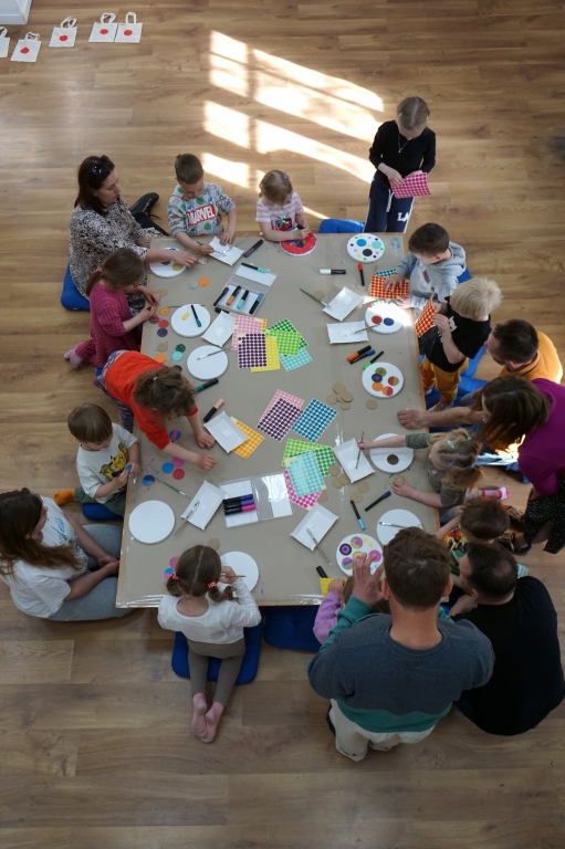 Podczas kolejnych Twórczych cudaków dzieci poznały twórczość Yayoi Kusamy. Wymyśleni bohaterowie zajęć Basia i Kaziu zabrali uczestników na wystawę do Ludwig Museum do Kolonii. Uczestnicy zobaczyli wnętrza pełne obiektów pokrytych różnokolorowymi kropkami. Następnie stworzyli swoje okrągłe obrazy, których głównym bohaterem były kropki, koła i grochy. Na zajęciach dzieci wykonały również małe torby bawełniane, na których kropki zmieniły się w pająki, kotki, jabłuszka, kwiatki i czarne dziury.